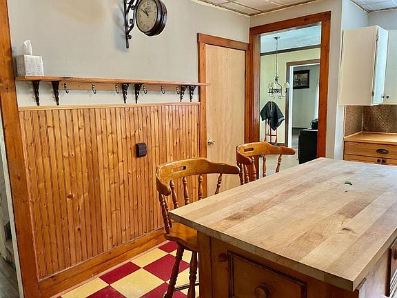 Spacious Eastlake Victorian home located in a charming historic village. The yard is easy to maintain and full of beautiful plantings. Large country kitchen features a double enamel sink and island with seating. First floor bedroom with ensuite bath. Upstairs has 2 more bedrooms, full bath, bonus room and fresh carpeting. Large mudroom with laundry and lots of storage. Spend the warm days out on the deck which overlooks a small creek. Take the chill off the cold days with the pellet stove. Heat pump/AC units, metal roo, replacement windows were added in 2011. Many updates have been done, but some work remains. Property being sold as-is. Come put your own finishing touches on this little gem!