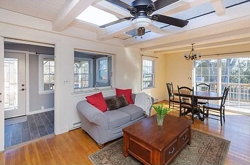Location is everything! Lovingly maintained from the inside out. This spacious ranch-style home offers a large sundrenched living room with dining room area with beamed ceiling, eat-in kitchen with tile floor, a family room with pellet stove, 2 large bedrooms, 2 updated baths and a first floor laundry, additional 1st floor bedroom/cozy sunroom/office with outside access, and an extra 2nd floor loft bedroom. A large wrap-a-round deck for entertaining, relaxing, and enjoying the stunning landscaping and mature perennials that create a beautiful outdoor area. The oversized 2 car garage offers a 2nd floor bonus living area (19x22) for those extra guests. Easy stroll to the South River, Humarock Beach, Marshfield Yacht Club, and restaurants. Eames Way Elementary School district! A few minute drive to Route 3 and the Commuter Rail. This is the home you have been waiting for!