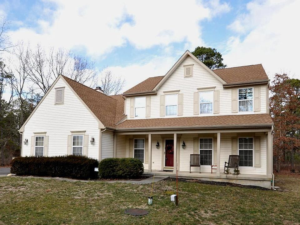 Located in desirable “Burrs Mill Estates”, this exceptional 2-Story “Shamrock” model offers you quality construction with beautiful style brought to you by custom builder “Kevin Scarborough”. Step onto you covered front porch and enjoying that welcome home feeling as you begin your tour. You can’t help but notice the gleaming hardwood floors and staircase, the large formal living and dining rooms, a fantastic kitchen boasting 42" oak cabinets, granite countertops, center island, pantry, stainless steel appliances, double oven and loads of counter/cabinet space. The open breakfast area adjoins to the kitchen as well as the comfortable family room complete with cozy fireplace, window seat and exit door heading out to your patio area & rear yard offering seasonal nature views. Additional home features include second level primary bedroom, hardwood floors here also, walk-in closet, a private bath with double sink vanity, oversized shower & large corner garden tub. What a relaxing get away! The three additional, spacious bedrooms, give excellent closet space and storage. Do not forget the desirable second floor laundry! A full, nearly finished basement awaits your final touches, over-sized two car garage, storage shed, evergreens and oaks, exterior lighting, energy efficient geothermal heating/cooling and so much more. This great house is nestled on over 1.3 acres. Lenape Regional School District. Original owner is selling home “AS IS” but has lovingly maintained this property. 1 year home buyer warranty included at settlement with acceptable offer. Don’t miss this one!