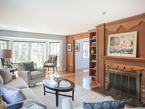 Located on scenic Bow Rd in historic district near the center of Wayland abutting conservation land is this lovely updated raised ranch. Enjoy the sights and sounds of nature from the spectacular level back yard with decorative pond. This meticulously maintained 4 BR home has a beautiful updated kitchen, a large fireplaced living room with stunning bay window and lovely carved mahogany wall. Master Bedroom with full bath and three additional bedrooms all on the same level. The lower level features a large family room with wood burning fireplace and hobby room, half bath, laundry and a three season sunroom overlooking the yard. Many recent updates. Don't miss this wonderful opportunity to live on a lovely street just a short distance from the Town Center.