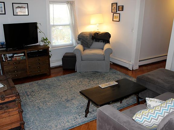 Beautiful, sunny two-bedroom apartment in ideal Newton Center location. Hardwood floors stretch across the kitchen and into the window-lined dining room. Beautiful tile in the remodeled bathroom, plus an in-unit washer/dryer with plenty of storage. Two bedrooms, plus central A/C. Walking distance to the Green D line T stop and all the restaurants and shops Newton Center has to offer. On a one-way street just steps from the Newton Center playground and open space.