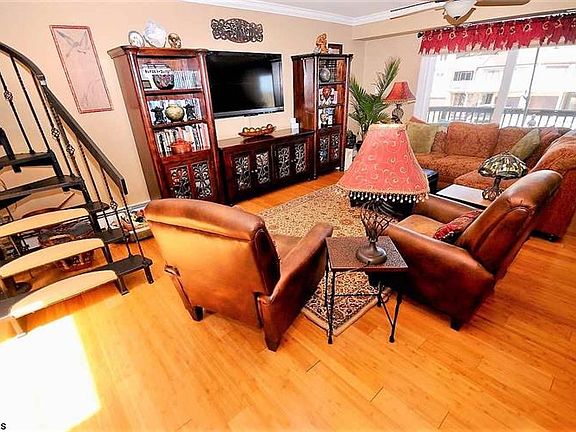 One of the Largest Town Homes at this Beachfront Community, 4 bedrooms, 3 1 2 baths over 2, 450 Square Feet (including decks) Large Great Room (24 x 32 ) Has Formal Living Room area that leads to a Deck (8 x 20) Ocean Views. Sitting area in front of Gas Fire Place, opens to a Large Deck ( 8 x 20 ) with remote control retractable awning and Ocean and Atlantic City Skyline Views. Large Dining Area, Kitchen with complete appliance package. 3 Bedrooms on the First Floor which includes a master bedroom, Also a Bedroom which opens to a deck and well landscaped path Entrance for easy walk to the ocean. 3rd Floor Master Bedroom with bath, Desk area, walk-in closet and ocean views from large window. Bamboo Flooring through out the house, ceiling fans on all floors. A must see Town Home, Call now a Truly Unique Property, Easy to Show.