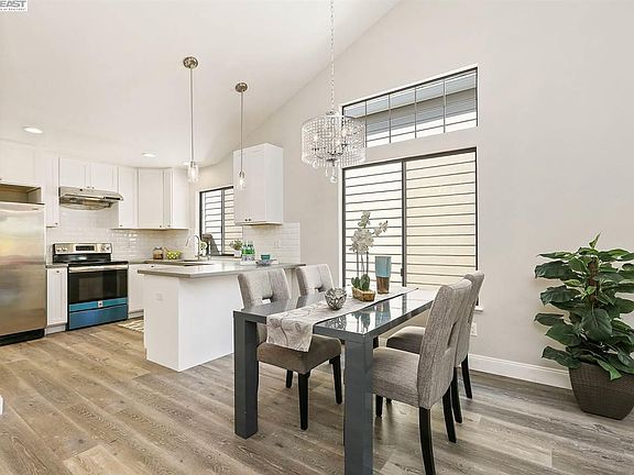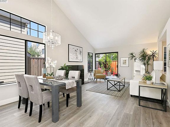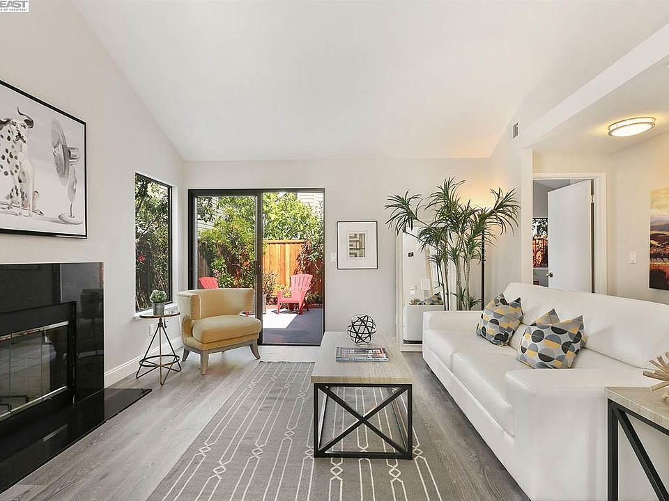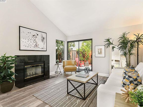 Stunning one level home in Bay farm area! 2 bedrooms/2 baths with an open floor plan, vaulted ceilings in the living room, dining area, chic open kitchen, Max use of space. Sliding door to the low maintenance back patio, new granite fireplace. vaulted ceiling in master suite with access to patio. Remodeled baths with new vanity and floorings. 2-Car garage with spacious driveway. Close to guest parking. Community pool. Close to shops, schools, SF ferry, Google / Apple shuttle station. and parks.