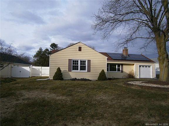 One floor living conveniently located near Newington Center and all its amenities; restaurants, Starbucks, Dunkin, banks, library and almost anything else you might need. The living room has a fireplace, the kitchen has sliders to the patio and a large fully fenced back yard. There are 3 spacious bedrooms. The house has central air and is also equipped with rented solar panels. Please call listing agent about solar panels and your mortgage options/limitations.