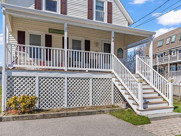 Why do people want to live at York Beach? Sandy beaches, iconic landmarks like Fun-o-Rama, the Goldenrod where you can watch the salt-water taffy being made, the Little Bull, Union Bluff.... to name a few! From 26 Broadway you are a FIVE minute walk to it all! After a concert at the Bandstand, walk home to sit on the porch to share your favorite moments of the day. The original, handsome front door welcomes you in. There is a comfy living room and also a den for separate conversations or activities. The beautifully remodeled kitchen with a big island will happily accommodate the short-order cook or the gourmet chef. Step out the back door with your morning coffee on the deck for views of the ocean and a panorama of the York Beach scene. The flat backyard is perfect for croquet or cornhole. There is plenty of room upstairs for family and friends with 3 bedrooms and a spacious full bath, all with a vintage vibe and ocean views. Don't miss the surprisingly functional full basement (unusual for a beach property), outdoor shower, and whole-house fan. SHOWINGS BEGIN at the OPEN HOUSE Sat 4/26 1 - 3PM