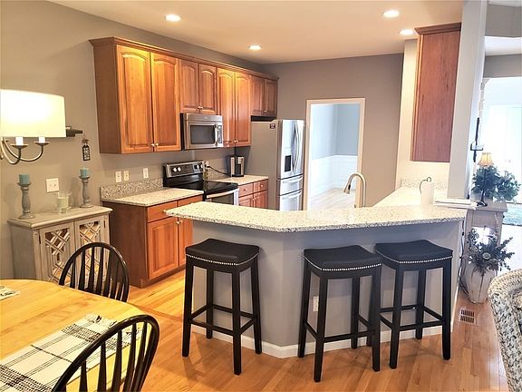 Make a date to see this gorgeous home in Meadowbrook Village, a popular 55+ community in the Berlin countryside. Gourmet kitchen with granite counters-breakfast bar- young stainless steel appliances and dining area with sliders to inviting three season porch. Fireplaced living room with soaring cathedral ceilings and dramatic open staircase to the second level. Formal dining room with plenty of space for hosting holiday dinners. First floor primary bedroom offers a wall of glass overlooking the wooded backyard-lovely tray ceiling-large walk in closet-luxurious bathroom with oversize double vanity and spa tub. Sunny second bedroom plus a loft and another full bath complete the second level. Full finished walkout lower level family room with gas fireplace and office space has lots of room for friends and family. Gleaming hardwood floors-tons of closet space-2 car attached garage. Private setting with easy access to major routes, shopping, dining and entertainment. A must see!