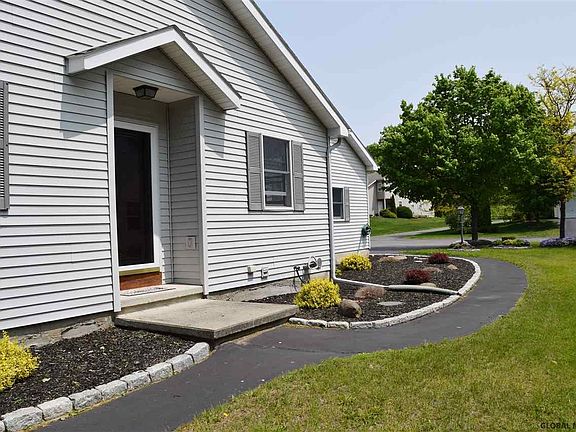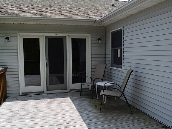 Single floor living plus full, walk-out basement in this 3 BR, 2 BA E Greenbush contemporary ranch-style twin home in convenient location minutes to downtown Albany, 787, Regeneron & shopping in great n'hood w/ wooded, forever-wild private view from the deck & patio. Just 18 yrs young & offers upgraded Andersen windows, gas fireplace in combined DR/LR w/ vaulted ceiling & skylights w/ new tinting, new SS refrig, new carpet MBR & LR, updated lighting & porcelain tile flrs. $100/YR HOA; taxes w/o exemptions. Excellent Condition