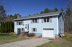 Super Split featuring large living room open to dining room, eat-in kitchen, 3 good sized bedrooms and full bath and finished lower level with family room with wood stove, 3/4 bath, den/office and laundry room plus vinyl siding, newer roof, 3 season porch, shed and 1 car garage all on great .41 acre lot overlooking Baboosic Brook in great neighborhood.