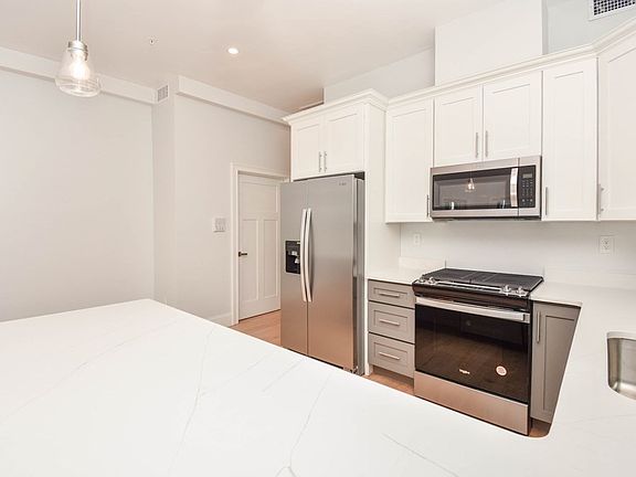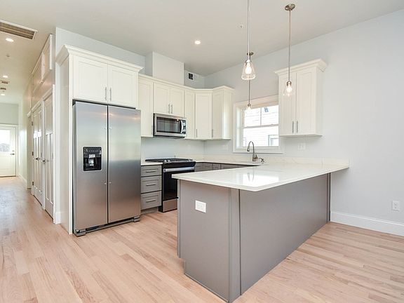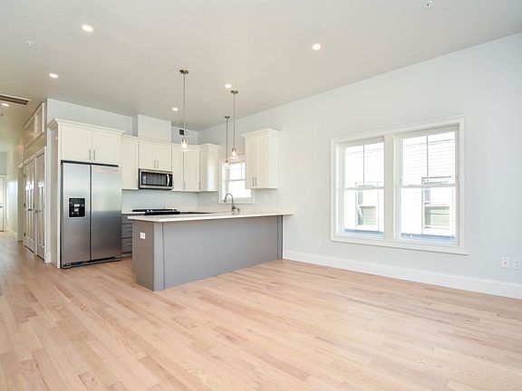 Back on Market due to buyer's financing. Last unit available! Fabulous 3 bed 2 full bath new construction. Bright open concept living, dining and kitchen with high ceilings, large windows and recessed lighting. Three good size bedrooms including the primary with a sizable closet and en suite bath with walk in shower. Unit features 10' ceilings, hardwood floors, and in unit laundry. Energy efficient gas heat, central air plus on demand hot water. Gorgeous new kitchen with soft close cabinets, stainless appliances and quartz counters. Enjoy private outdoor space on the composite balcony off the front or the 23' deck in the back. Large storage unit in basement. One deeded parking space. Great location near Franklin Park and Public Transportation. One Year Builder's Warranty.