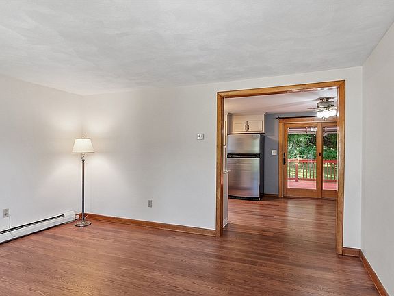 Move right into this lovely, well-maintained ranch with many updates including roof, windows, new stainless steel oil tank, kitchen. Enjoy the private, country type setting with the ease of access to highways and all local amenities. Beautifully updated large eat-in kitchen with Quartz countertops and double stainless-steel sink and appliances. Large slider to deck and patio for grilling, relaxing and entertaining. Hardwood floors in the living room, tile in the bathroom and luxury vinyl tile in the kitchen and living room for easy maintenance. The lower level walk out basement is finished with a cedar closet and laundry room. Large 2 car garage with partial heat keeps the chill off for a workspace. There's a built-in storage shed under the patio for hiding the trash bins or storing equipment.