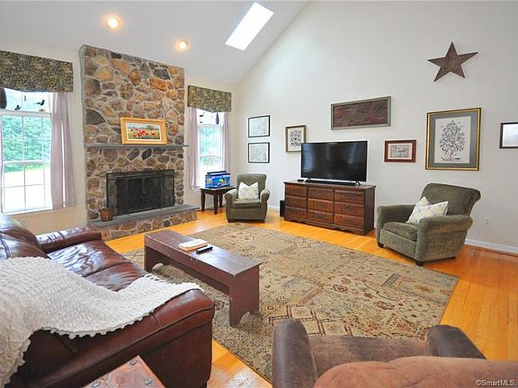 You will fall in love with this gorgeous 1997 custom Colonial with BRAND NEW HVAC system (2020, newer siding and roof and skylights (2018, soaring ceilings, spacious foyer, and so many more amazing features: The Great room boasts a stunning floor-to-ceiling stone fireplace flanked by oversized windows and has a vaulted ceiling and warm hardwood floors. A kitchen with breakfast bar, newer appliances, pantry, and eat-in area overlooks the picturesque backyard and opens to both a spacious sunroom/porch and the Great room. The first floor master has a full en suite bath with both shower and jacuzzi tub and a large walk-in-closet. Need space to work from home? 26 Bushy Hill offers a main floor home office with French doors AND an additional upper level bonus room (with separate entrance for 2nd home office, 5th bedroom, workout space, or game room. In addition to the large bonus room upstairs, there are three good-sized bedrooms and a full bath. Other fabulous features include a separate laundry room on main level, a huge basement with tons of possiblities, a gorgeous brick paver patio in the backyard off the sunroom--perfect space for entertaining and enjoyment, front yard sunset views, and so much more Nestled on a picture-perfect lot in a quiet neighborhood setting where you can walk to Clark Farms at Bushy Hill Orchard and have quick access to all that Granby Center has to offer. Interior pictures coming soon but don't wait--schedule your showing today