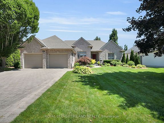 Prepare to be captivated by this custom-built bungalow, perfectly situated in Byron's most exclusive and high-end enclave, Warbler Woods West. From the moment you arrive, the stunning curb appeal and meticulously landscaped front yard (complete with a convenient sprinkler system) will impress, hinting at the luxury within. Step inside and discover a main floor designed for sophisticated living. Here you'll find 3 bedrooms (one is currently being used as a TV room), 2 beautifully appointed bathrooms (Primary Ensuite with double sinks, bathtub and separate shower), a bright and inviting kitchen with an eating area, a formal dining room, and main floor laundry room.The magic continues downstairs! The fully finished lower level is an entertainer's dream, featuring an enormous family room, a dedicated office, a fourth bedroom, and another bathroom with double showers. This level seamlessly transitions to the incredible outdoors, with a walk-out to a private oasis. Outside, your personal retreat awaits. Enjoy summer evenings on the two-tiered deck, or host gatherings on the ground-level patio, all set within a spectacularly private and serene yard.This isn't just a home; it's a testament to refined living in a coveted location. Don't miss the opportunity to experience the unparalleled beauty and thoughtful design of this Warbler Woods West masterpiece.
