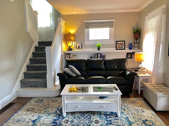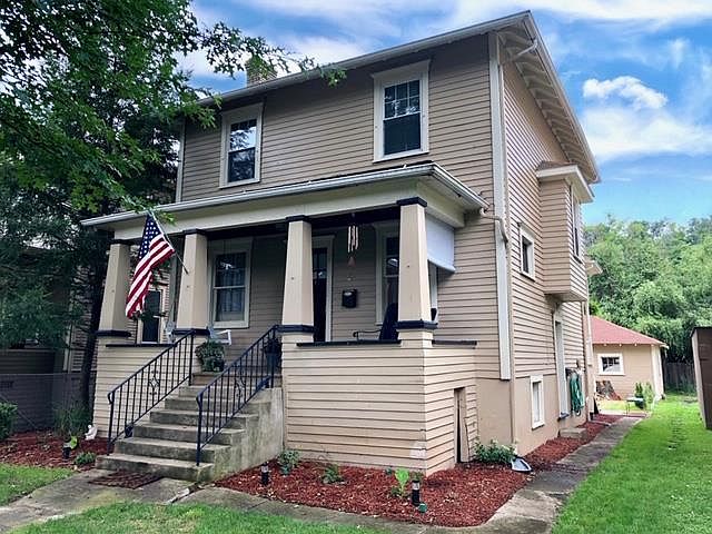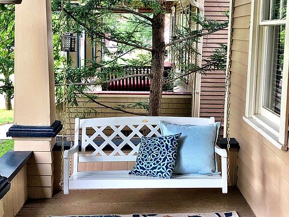 Great floor plan, large remodeled kitchen, added first floor full bath with walk in shower, first floor laundry, hardwood floors, 2nd floor has large carpeted bedrooms, and large tub bath, Plenty of storage in basement and detached garage. Enjoy the sitting on the front porch or walks through the neighborhood.