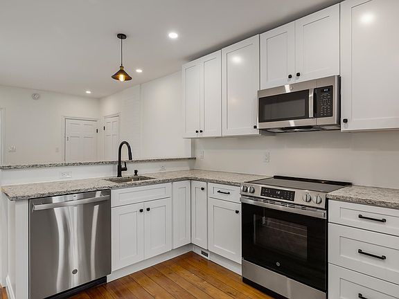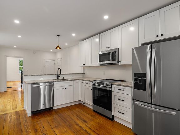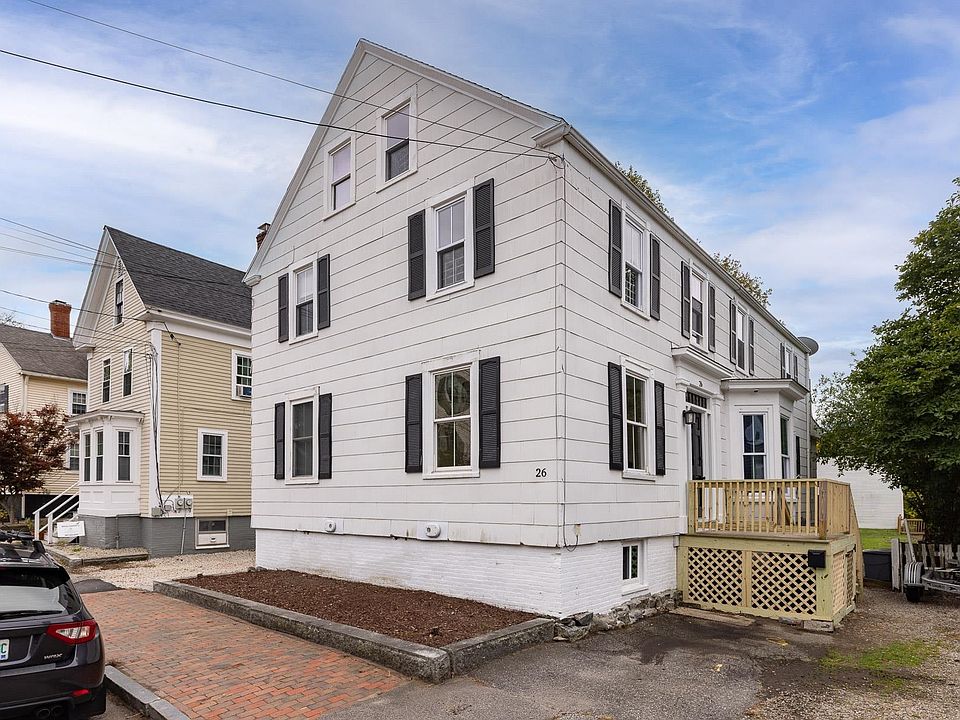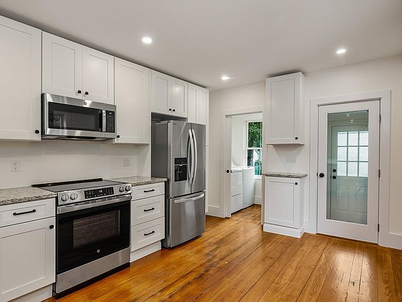 EXTENSIVE RENOVATIONS just completed, a beautiful NEW kitchen, updated baths, new flooring, and fresh paint from top to bottom. This sun-filled, immaculate townhouse offers 1,300 SF across three levels with 2 bedrooms, 1.5 baths, and an office/flex space. The main level features a brand-new gourmet eat-in kitchen with soft-close dovetailed cabinetry, a built-in pantry, granite countertops, and stainless appliances, plus a breakfast bar and adjacent dining area. Up front, there is a bright, spacious living room. You'll appreciate the first-floor laundry/powder room and mudroom, freshly refinished pine flooring, recessed lighting, and period doors/trim. On the second floor, there is a large primary bedroom with a walk-in closet, a full bath with tub, and a second bedroom. The third floor offers dedicated office/flex space. A full basement provides excellent storage & workshop space. Hardwired ethernet ports to every room allow for easy activation with Fidium and Comcast internet providers. One off-street parking space included, there is additional on-street parking nearby. The backyard is perfect for grilling and relaxing. Ideally located in a desirable, sidewalk-lined neighborhood just a half mile to downtown Portsmouth & the vibrant West End, walk to coffee shops, restaurants, breweries, the theater, the gym, pharmacy, and grocery shopping. Dogs considered for an additional fee; no cats. Credit and background check w/references required. 26 Cabot Street checks all the boxes!