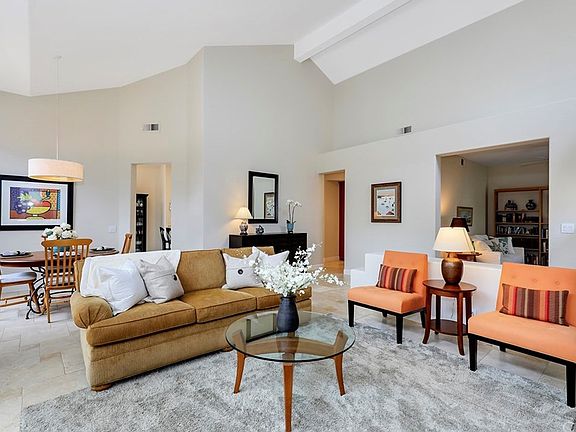 SINGLE STORY HOME built by JM Peters with 2 BEDROOMS + an OFFICE! RESORT STYLE LIVING IN ALICANTE, a Tijeras Creek Golf Course Neighborhood! Features custom paint, tumbled travertine floors, large baseboards, ceiling fans, recessed lighting, vaulted ceilings, living room with a travertine fireplace and a formal dining room. Remodeled kitchen with granite counters, stainless steel appliances, stunning white cabinets, beautiful backsplash, solarium windows and a breakfast nook that opens onto the patio. The master bedroom has vaulted ceilings, walk-in closet with built-ins, private patio and a master bath with a stall shower, tub, vaulted ceilings and skylight. Relax in the private back patio area with an overhang, landscaping and view of the greenbelt. There is a two car attached garage, concrete driveway and the home has been repiped with Pex Piping. Enjoy Alicante's association pool and spa! Also the Rancho Santa Margarita City Association amenities like the Lake, Lagoon, Pools, Parks, Tennis Courts and More!