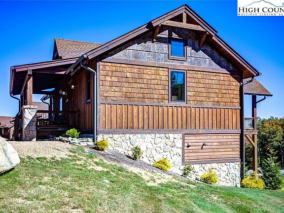 If you are looking for the perfect, quaint mountain getaway then this is a must see. Starting with long range layered views you can see on a clear day all the way to Tennessee. This brand new custom home built by Wheels Contracting is loaded with upgrades. Upon entering the home you are greeted with gorgeous T&G vaulted ceilings, hardwood floors throughout, large sliding glass doors highlighting those long range views, floor to ceiling stone fireplace, barn wood accents throughout. The kitchen features an oversized granite countertop with seating for four! Being offered fully furnished this one level home features two king suites. Unlike any of the Camp Eagles Nest homes the additional 537sqft of heated living area can be utilized as a gaming area or comfortably fit two ATVs. Outdoor living at its finest with an expansive 16x16 covered porch. Huge boulder firepit area sits near a moving creek with built in seating allowing you to enjoy the colorful sunsets while listening to the moving water. Steps from Camp Eagles Nest which features pickelball, basketball and tennis courts, fishing pond, hiking trails, climbing tower, playground, and more! Short drive to the Beech Mountain connector which will have you on the slopes in less than ten minutes. This home has never been rented but would make a fantastic rental investment with its long range layered views and convenient location in the middle of the mountain.