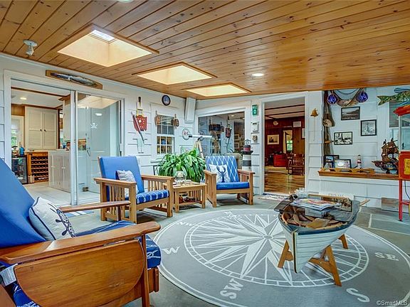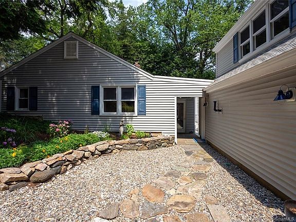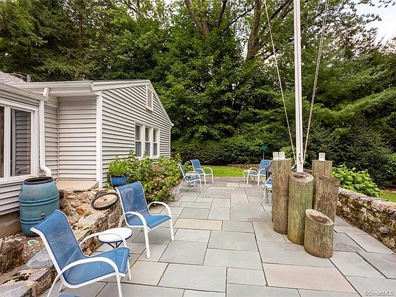 Looking for something different??? In "not so far" North Stamford, tucked away near the Stamford Museum is where you will find this cozy home. This 4 bedroom 3 bath ranch has been updated and well maintained. Step up to the 18' x 16' sun filled gathering room with slate floor, heat & AC, overlooking the patio, deck, flagpole and beautifully landscaped open yard. There are 2 en-suite bedrooms. Private entrance to the office (575 sq ft) above the detached 2 car garage. Attic and a large shed too! Porch not included in square footage as per City of Stamford, however it t is heated / AC and an interior room. Updates: Updated tumbled marble Master Bath, windows, roof, siding, leaf guard system, landscaping, well pump, washer & dryer, granite tops and stainless steel appliances in the kitchen. *Andirons in living room are excluded* Agent related to seller. FUN FACT: This home hosted the Prince and Princess of Nepal on November 27, 1958.