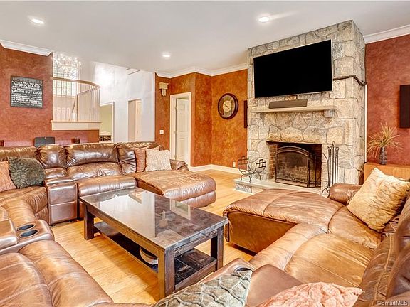 Don't miss this stunning home Breathtaking Colonial on cul-de-sac in premier neighborhood. Expansive lawn & cleared backyard space make for an outdoor oasis that includes an impressive tree fort & fire pit area for fun times outside. The magnificent interior space features large rooms & high end finishes & details. The chef's kitchen offers yards of counter space, and a large island & pantry. It is open to a spacious family room with stone fireplace & elegant granite wet bar w/glass front cabinetry. The open feel of the home with a "butterfly" staircase and abundant natural light provides great setting for entertaining. The second floor boasts 4 ample bedrooms including a main bedroom with a spa-like full bath and a massive walk-in closet. The second floor gallery/great room with arched openings to the hall is a wonderful and spacious area for study or play. The spectacular Lower Level with French doors that open to the patio is its own separate haven. It currently houses a professional gym-level exercise room, den with storage closets, pantry area, enormous game room with granite kitchenette w/island and plenty of cabinet storage, full bath and separate theater room with media seating and large video screen & built in speakers. The location is perfection - on a cul-de-sac with next to no traffic in a desirable and friendly neighborhood. This is a great area for walking and for hiking in the nearby Paugussett State Forest. Convenient to Route 34 for shopping and commuting.