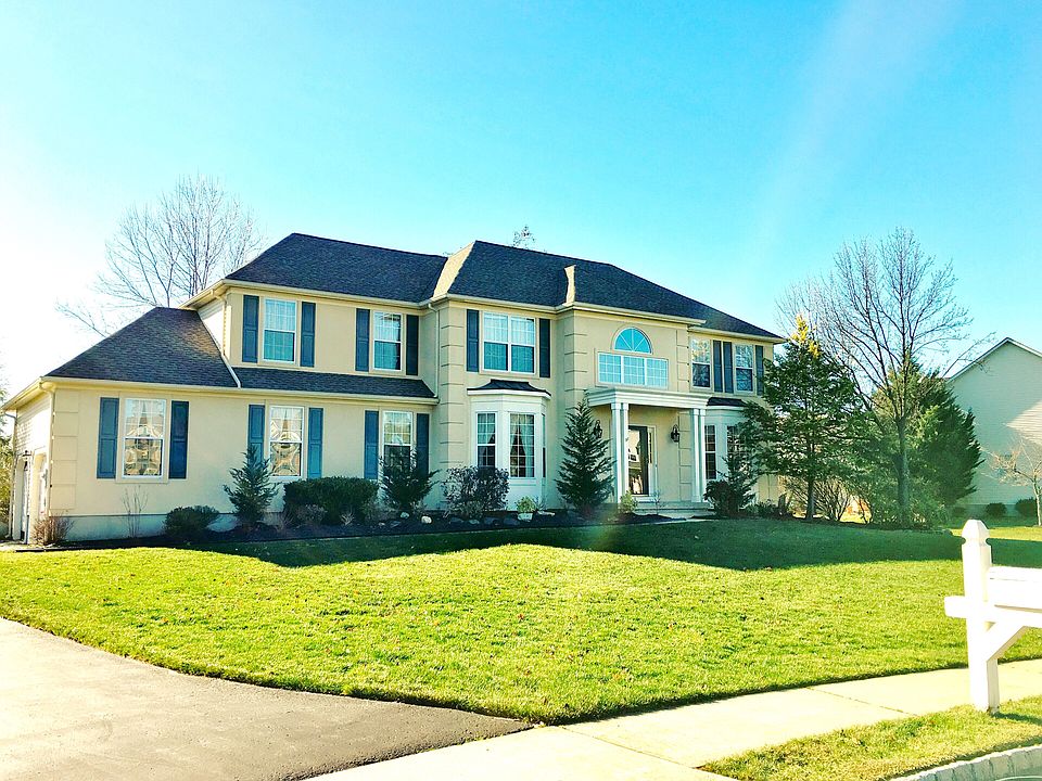 Situated on a premier cul-de-sac location and backing to preserved green acres, this stately 5BR Danbury makes a lasting 1st impression. The manicured, newly landscaped yard welcomes your guests as they enter the spacious 2-story grand foyer. This nearly 3,000 sqft floorplan accentuates the open concept w/ oversized rooms, 9' ceilings & 1st floor BR/office option. Entertain in your gracious 2-story family room while preparing dinner in your kitchen w/ granite counters & stainless appliances. Retire upstairs to 3 guest bedrooms PLUS a master suite w/ vaulted ceilings. New vanities in every bathroom. The spacious finished basement w/ full sized egress windows and 2.5 year old roof are added bonuses. Sends to Colts Neck High School.
