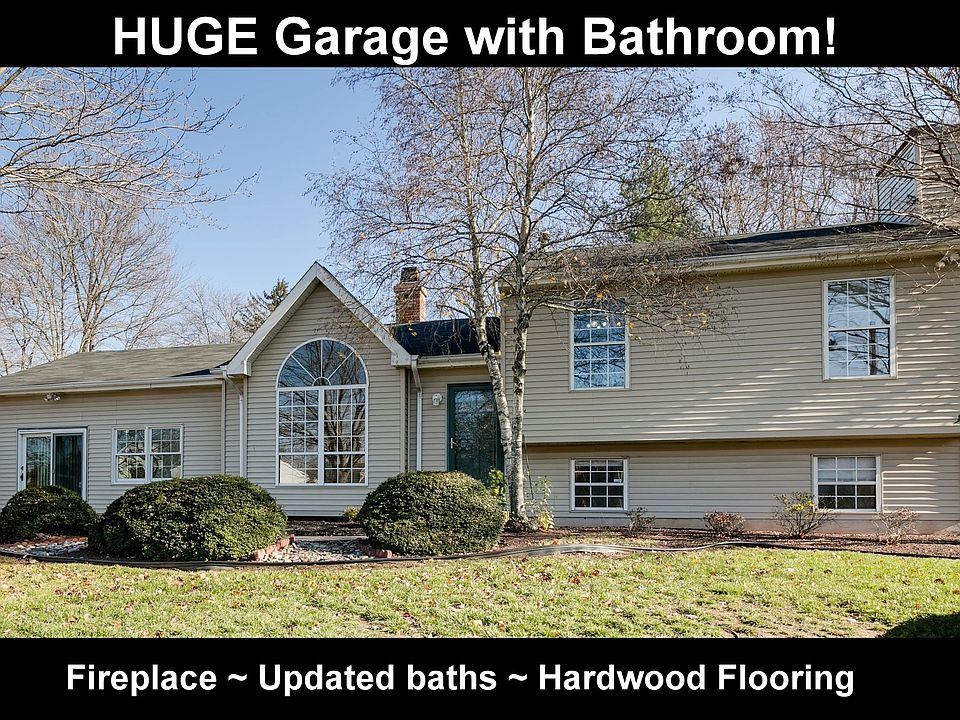 Fantastic Home with 4 Bedrooms, 2.5 Baths, Sun-Room, 2 Fireplaces and a custom Over-Sized Garage with Half Bath! Enter the home into the Living Room that Features Cathedral Ceilings, Hardwood Floors and Fireplace. Upgraded Eat-In Kitchen with 42" inch Cherry Wood Cabinets, Tile Flooring, Granite Counter-Tops, Track Lighting, Breakfast Bar, Skylight, and Sliding door to the Backyard. Stainless Steel Appliance Package included. The HUGE Great Room Features Chair Rail accenting, Crown Molding, Hardwood Flooring, Recessed Lighting, Ceiling Fan, and Two Sets of Sliding Doors one of which leads you to the Year Round Sun-Room. The Sun-Room has Wall-to-Wall Windows, Tile Flooring, Pre-Wired for a Ceiling Fan or Light Fixture and direct access to the Backyard. The Lower Level includes a Private Master Retreat with Recessed Lighting, Dual Closets, and Master Bath. The Master Bath Includes a Corner Walk-In Shower, Jacuzzi Tub, Tile Flooring, Recessed Lights and Linen Closet. Located on the upper level you will find 3 comfortable Bedrooms with Ceiling Fans. Updated Bathroom features a 5 ft. Walk-In Shower with Designer Tile Surround, Tile Flooring, Custom Vanity and Wainscoting. You will love the Over-Sized Detached Garage (30 X 30) with Electric Openers which is large enough to hold all your toys! Garage also features a Powder Room, Work-Bench, and Pull Down Steps to Attic. The Separate Heating and Air-Conditioning Unit makes this Garage comfortable to use year Round. Additional Amenities include 2 Patios and a fantastic Shed. Easy access to major roadways and lots of shopping!