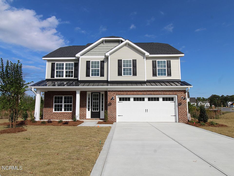 Welcome home to The Drayton, currently under construction by Caviness & Cates on a large corner lot in a private cul-de-sac in The Sanctuary at Forest Sound. This 2-story home includes 4 bedrooms and 2.5 baths and nearly 2400 sq ft of living space. The welcoming foyer adjoins the formal dining room with coffered ceilings and picture frame wainscoting. Across the back of the home, offering plenty of natural lighting, is the open kitchen, breakfast and great room with natural gas fireplace. The kitchen will showcase timeless Seattle ''Snow'' shaker cabinets, quartz countertops in ''New Willow White'', natural stone mosaic backsplash in ''Daphne White'' set in herringbone pattern, corner pantry with wood shelves, stainless steel appliances, including a natural gas range. All bedrooms are privately tucked away upstairs. The primary suite includes a fully tiled 6-foot walk-in shower with bench, double vanities, linen closet and large walk-in closet with custom wood shelving. Finishing out the 2nd floor, you will find 3 additional spacious bedrooms, a full bathroom with double vanity, laundry room with cabinets and an additional loft/living area at the top of the stairs. Additional features in this home include LVP flooring in the kitchen, great room, dining area and foyer, crown molding in the foyer, great room and kitchen, wainscoting in the foyer and up the stairs, oak tread stairs, epoxy garage floor, tankless natural gas hot water heater and gas HVAC. Enjoy the outdoors on your large, covered porch with extra grill patio and sodded and irrigated yard with rain sensor. The Sanctuary at Forest Sound is a brand-new community centrally located in the heart of Hampstead. 15 minutes to Wilmington or Surf City/Topsail and just 1 mile off the Intracoastal Waterway. Future proposed amenity includes a boat storage area. Home is under construction. All options, finishes and completion dates are subject to change. See agent for details on selected finishes.