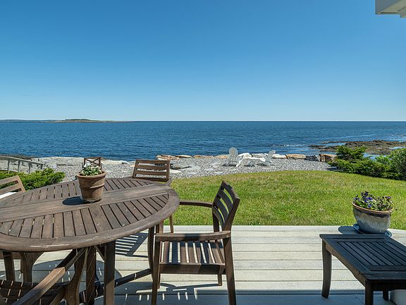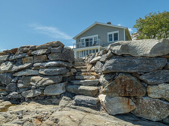 This lovely Maine cottage is perched on the rocks of Bailey Island providing expansive southeasterly views of the Atlantic Ocean, including Pond Island, Pond Ledges, and other Casco Bay Islands. Ready for immediate occupancy with 3 bedrooms, 2 baths, a brick wood-burning fireplace, the open floor plan with many seating areas and the deck, balcony and waterfront stone terrace provide views. Stone steps lead directly to the rocks below for easy water and semi-private beach access. Cedar Beach and Cedar Island are just a short stroll from the property.
