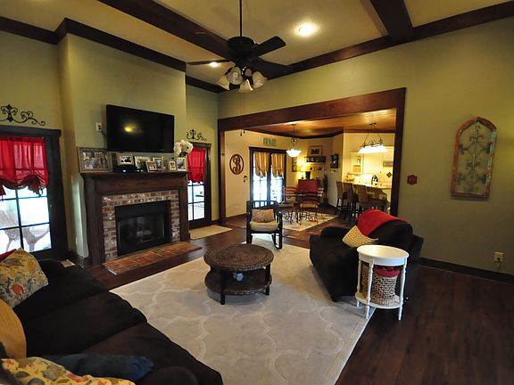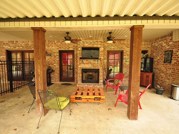 Situated on a secluded 1.24 acre lot this beauty has a lot to offer. Not to far from the main home there's a 30' x 40' workshop nestled in the back corner over looking the enclosed backyard which connects directly to the back patio. At the back patio you'll find the outdoor entertainment area complete with TV hookups and a brick enclosed fireplace. Inside you'll find an extensively updated kitchen complete with light colored solid wood cabinets, slab granite counter tops and a MASSIVE double door refrigerator. Complemented by the vibrant red brick pavers in the kitchen is the solid wood heart of pine covering the ceiling.The living area opens to 12' exposed beam ceilings complemented with a beautifully enclosed fireplace. Just down the hall is the master bedroom along with 2 additional bedrooms connected by a jack a jill bathroom.