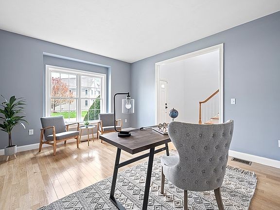Stunning 3 bedroom 2 full 1 half bath unit in The Village at Cedarview in Milford! Enter in the grand foyer &fall in love! The living & family room offer beautiful hardwood floors & the open concept kitchen/ dining with back deck access is the perfect layout for entertaining! The family room also boasts a beautiful gas fireplace & a pony wall open to the dining/kitchen area.The dining room features pendant lighting, french doors & sliding door access to the spacious back deck and yard! Enjoy the bright & open kitchen, featuring a kitchen island, stainless steel appliances, & recess lighting. Upstairs you will find the primary, spacious suite complete with its own private bath with double vanity, soaking tub & walk in shower. 2 additional bedrooms upstairs as well as convenient 2nd floor laundry, ample closet storage & a 2nd full bath. Central AC. Perfect location, minutes from 495!
