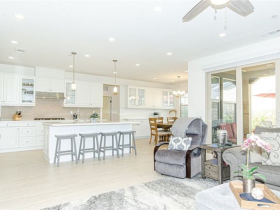 TRUE SINGLE STORY HOME WITH PRIVATE DRIVEWAY and front porch in 55+ Avocet community. Spacious floorplan beautifully upgraded with easy care wood-look tile floors, white shaker cabinets with nickel pulls, quartz countertops including large island with seating, quartz topped built-in cabinetry in dining nook with glass doors, wood-look tile backsplash, stainless steel appliances including refrigerator, pendant lighting, convenient cabinet rollouts and walk-in pantry. Laundry room with sink and lots of storage. Upon entry is an office/den that can be converted to a 3rd bedroom, and small hallway to guest room, guest full bath with step-in shower. A separate hallway leads to the oversized master suite with luxurious master bathroom with quartz counter, dual sinks and herringbone subway tile backsplash, deep soaking tub with quartz surround, separate step-in shower with upgraded tile and walk-in closet. Ceiling fans, alarm system and wide wood blinds throughout home. Step out the sliding doors onto your outdoor loggia with interlocking paver flooring and mounted TV. One of the larger private lots in Avocet complete with built-in firepit, paver patio, 2 tranquil fountains, oversized side yard, double gated trash area and privacy of no neighbors looking onto your yard. Your attached garage is complete with epoxy floor and storage racks. Enjoy access to all of the RMV amenities (All-Age and 55+) and enjoy the the 55+ Outlook Pool Complex with pool, spa, outdoor kitchen steps away!