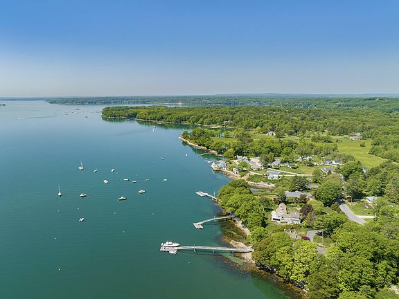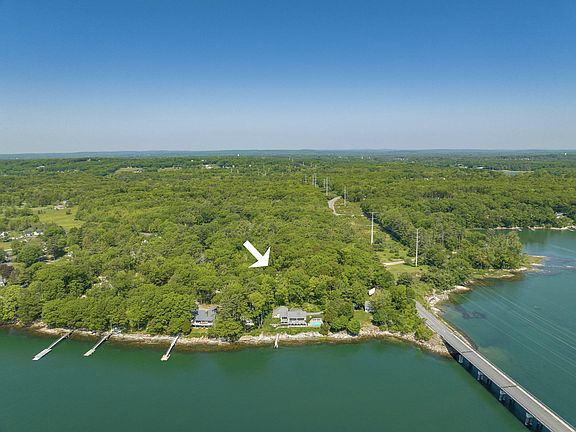 The master BR suite [and new marble tile bath] enjoys a large glass window overlooking a tiny pond and garden. Casual but elegant, this architecturally designed 1970 home balances a modern lifestyle with nature's best. Enjoy elevated private decks, soak in the hot tub, and take your paddle board down to a direct private ROW to Casco Bay in the rear of the home.