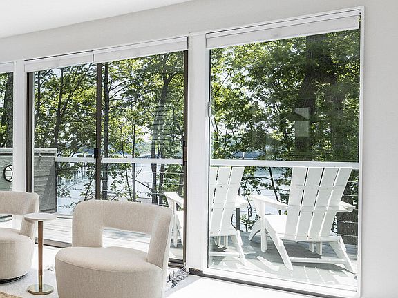 The striking top floor 36' great room overwhelms one, with stunning water and green leafy views through large glass windows. Pull up a bar stool to a marble waterfall countertop, Sink into 2 cozy seating areas, Dine with guests while enjoying the view. The multi glass breakfast room off the updated kitchen, charms all.