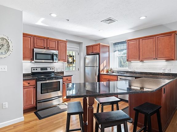 TOP FLOOR UNIT IN HIGHLY DESIRED SOUTH WALTHAM! Eat-In Granite kitchen with Cherry cabinets, Stainless-steel appliance, and plenty of cabinet/counter space. Kitchen opens to the living/dining area with high ceilings and recessed lighting. Large bedroom offers walk in closet and private full bath with new tile flooring and new vanity. Bonus half bath for guests off the living area. Laundry in the unit, hardwood floors throughout, covered back deck for entertaining, CENTRAL AIR, common greenspace, dedicated storage, and two parking spaces make this unit a must see! Right off all that Moody Street has to offer, across from the Charles River Path, Commuter Rail, and all major routes. OPEN HOUSES SATURDAY AND SUNDAY 11:30AM-1PM.