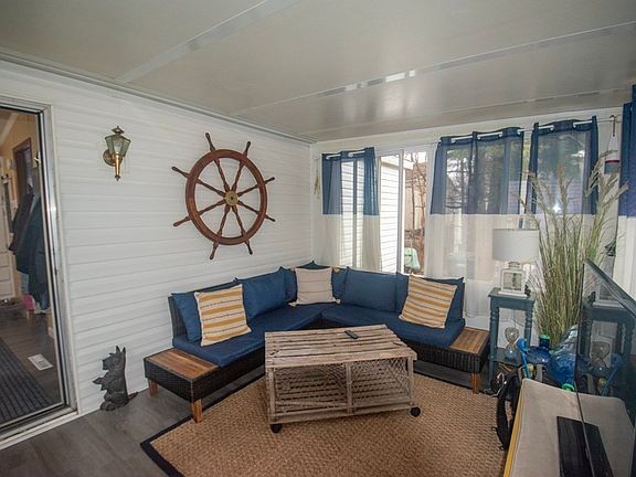 Great opportunity to own in Pine Tree Village, where all ages and pets are welcome! Located in the bucolic heart of Cranberry Country, yet close to Rt 58 and 495. This single wide with 2 bedrooms and 2 full bathrooms was renovated approximately 3 years ago, including plumbing, heating system and hot water heater. Kitchen has popular white shaker cabinetry, and is open to the dining and living areas. Nice 3 season porch is adorable and a nice bonus to the space. This is a resident owned community. Park fee includes trash, taxes, water, septic, common areas and snow removal. Application to park & credit check must be completed to apply for residency.This is an excellent value for a free standing, non age restricted home! Seller can provide quick occupancy.