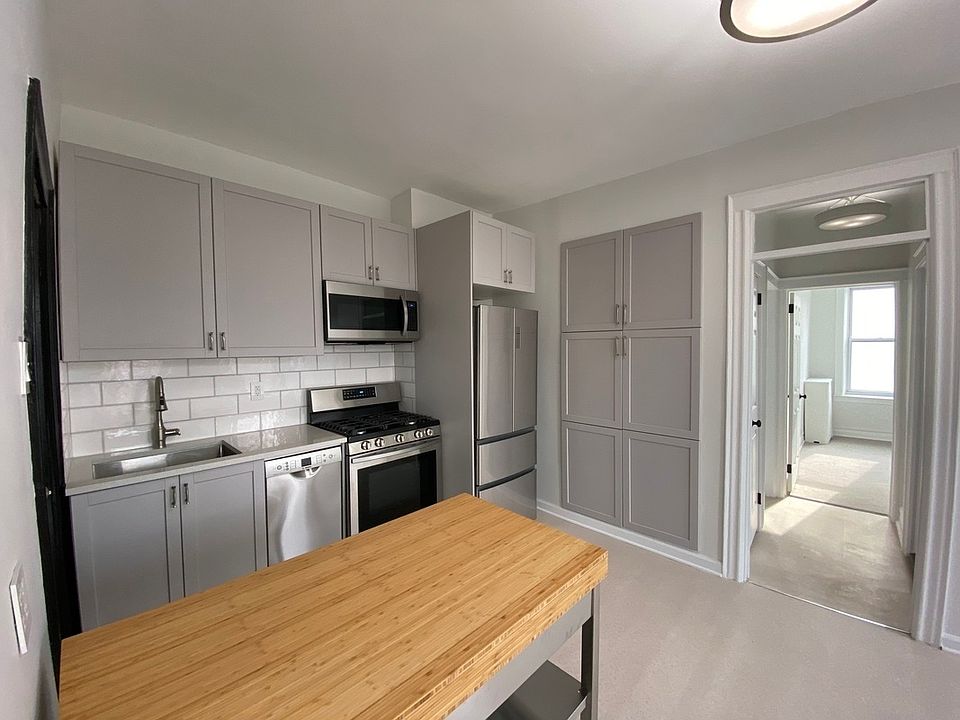 BRAND NEW RENOVATED sun drenched spacious and flexible 3 bedroom/1 bath apt one block from Green-Wood Cemetery with PRIVATE TERRACE and GARAGE PARKING Be the first to live in this renovated gorgeous 1200 sq foot apartment located on the top floor of an owner occupied two family home with available parking in a garage. The apartment was restored to showcase the original details of the 1920's home, while still adding modern amenities. The spacious apartment features two newly carpeted bedrooms, renovated bathroom with built in storage, modern eat in kitchen with floor to ceiling pantry, stainless steel appliances, quartz countertop and an island, original restored parquet flooring in the living room and flexible third bedroom (can be used as a bedroom or additional living space) with separate office/nursery space. Wait, wait, there is more your own private 200 square foot terrace! The home is located on a corner, so it is flooded with sunlight throughout the day from its three exposures. The home is located one block from Green-Wood Cemetery in a quiet family friendly neighborhood close to the subway (7 minute walk to the F and G train at Church Ave) and near several restaurants (Brancaccios, Steeplechase Coffee Shop and Hamiltons), grocery stores and laundromats . Parking is available for an additional monthly fee of $250 School District 15 Sorry, no pets allowed.