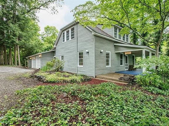 Let the end of the road privacy and mountain views from the wraparound porch of this historic home welcome you in! Enter into the living room w/functional wood burning fireplace and take in all the charm this unique home has to offer. Continue through to the dedicated dining room which is open to a great room w/vaulted ceilings and skylights as well as the kitchen. You'll find plenty of cabinets, newer appliances, ample counter space, along w/breakfast bar and nook. The master is conveniently located on the main w/large bath and laundry. Upstairs are two guest rooms and full bath w/classic clawfoot tub and shower. In addition to the wraparound porch there is another deck off the great room w/access to fenced yard! This home also has mature, low maintenance landscape and circular drive w/easy access to the oversized 2-car garage w/electric openers and workshop area. Appreciate the feel of mountain living while being only 2 miles from downtown and 20 mins to Asheville.