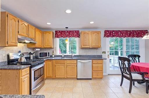 Bright, sunny, turnkey home with gorgeous lot and set back from the road. Gleaming hardwoods, eat-in kitchen with GRANITE and STAINLESS appliances and good sized bedrooms with cathedral ceiling in master. 2 car attached garage and partially finished lower level adds to the meticulously maintained home. Newer Hardiplank siding, first floor laundry and much more. Huge CEDAR deck and patio offers great entertaining space as it overlooks a professionally landscaped useable PRIVATE yard. Effecient gas heat. Ample storage, tasteful decor and workbench in basement will stay.