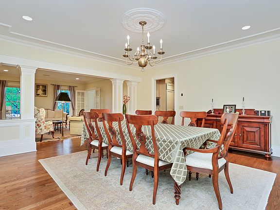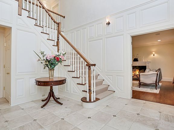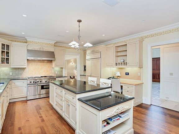 Classic elegance epitomizes this gracious four bedroom manor poised on a well-landscaped acre on a gated, private lane in Chieftans close to the airport and New York border. A dramatic double height entry hall introduces the inviting main level with French doors to both the striking library, with a coffered ceiling, wet bar and wall of built ins, and to the refined living room, anchored by a fireplace. A granite-clad eat-in kitchen, adjacent family room with French doors to a stone terrace; dining room; and laundry/mudroom with access to attached three-car garage, complete the first floor. The second floor offers a private master suite with a fireplace and spa bath with steam shower; three additional bedrooms and playroom. Also boasts a top floor game room and unfinished lower level.