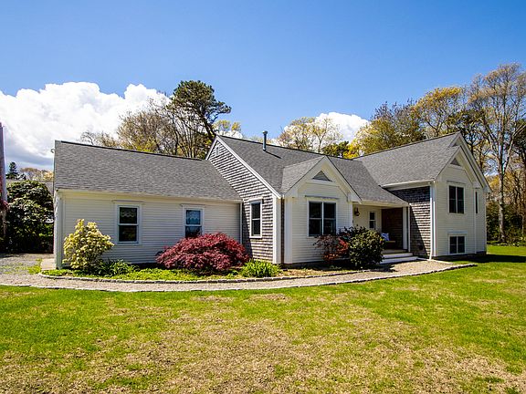 Nestled near downtown Sandwich Village, this contemporary home offers modern upgrades and classic charm, with distant ocean views. The kitchen features honed granite countertops, stainless steel appliances, and a spacious island. The open floor plan flows into the family room and dining area, warmed by a see-through gas fireplace. The front office boasts beautiful built-ins, while wide pine floors, central air, and a whole-house dehumidifier adds comfort. Upstairs, the primary bedroom offers ocean views and an updated ensuite bathroom. Two more bedrooms, a full bath, and laundry complete the second floor. The partially finished basement leads to the backyard. Outside, updates include refreshed trim with Azek and a fresh coat of paint. The landscape features new loam and hydraseed, ensuring lush greenery. With a 2024 roof upgrade, this move-in-ready home is waiting for you!