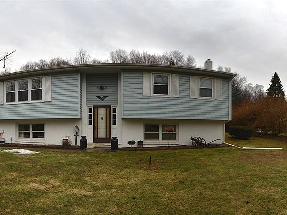 Great country location just 1 mile from amenities. Recent improvements include new roof 2014, new SS range 2019, replacement windows within last 5 years, freshly painted main level & more. LL flue for wood/coal stove. Exterior features covered patio, koi pond, pool w/decking & shed.