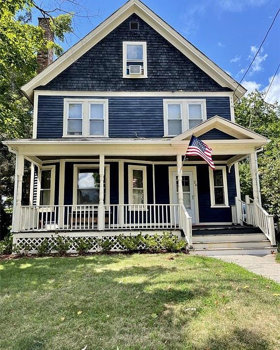 Welcome home to this lovingly maintained Victorian home in the borough of Stafford Springs. Perfectly situated within walking distance to shops and restaurants in the revitalized Main Street area and only 10 min to I-84. This spacious home has had many updates including fresh paint (inside and out), new kitchen appliances, remodeled main floor bathroom (2022), new hot water heater (2017), updated plumbing, electrical and a partial new roof! Entering the house from the rebuilt front porch, you'll immediately see the character within and throughout the home. The large living room has gorgeous, custom wood trim, a fireplace, wood floors and 8' ceilings. From the living room, you will continue into the newly tiled kitchen, which contains built in pantries and new appliances. The kitchen is open to the formal dining with 8' tall ceilings and several windows for excellent natural light. A full, remodeled bath and laundry round out the main floor. Upstairs, you will find 4 bedrooms, all with custom trim and new ceiling fans, an updated full bath and pull-down access to your attic, which has a full floor for plenty of storage.