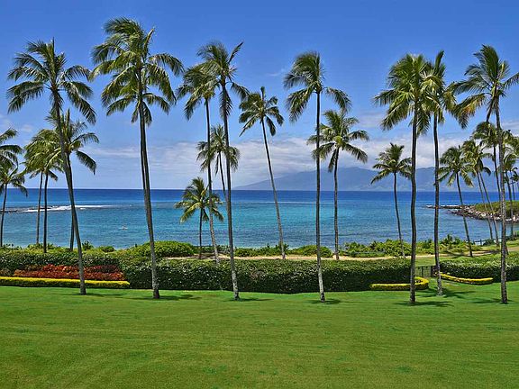 Oceanfront and beachfront living at its finest, Coconut Grove unit 26 is a treasured position above the world famous beautiful crescent sandy beach of Kapalua Bay is where you will find the finest Maui gated residential condominium complex within the Kapalua resort. A rare first time resale offering to purchase 26 Coconut Grove Lane in a complex prohibiting short term rentals. Floor plan 3 is an extremely spacious 2,625 interior square foot three bedroom, three and a half baths with 557 square feet of exterior lanai/balcony area. With a one car garage and a welcoming private ground floor entry, unit 26 offers explosive oceanfront Pacific Ocean and island views of the islands of Lana'i and Moloka'i from its superbly positioned second floor living area. The three bedrooms area all ensuite and privately separated from one another. The two Master bedrooms also include large walk in closets. Appointed with high ceilings, featuring travertine flooring, solid mahogany doors, cherry wood cabinets, granite counters in kitchen and full bathrooms with Corian countertop in laundry room. Amazing oceanfront views from a dream kitchen offering a propane gas range, built in integrated oven, microwave, Sub Zero refrigerator, wine cooler refrigerator, two refrigerator drawers and two Fisher Paykel dish drawers. Also featuring an additional powder room, separate laundry room, two interior oversized storage closets, as well as a large garage storage closet. Property is being sold unfurnished. If watching nightly sunsets, swimming, snorkeling, stand up paddling, walking or relaxing on the beach appeals to you, then 26 Coconut Grove is the perfect place for you to call home. The Coconut Grove complex features private owner pool, hot tub, gym, barbeque. party room and kitchen. Also neighbors The Montage Kapalua Bay, Spa Montage and Merriman's restaurant are all within a short walking distance. Kapalua resort amenities include world class golf, tennis center, award winning restaurants, resort shuttle, hiking/walking trails and an abundance of outdoor and ocean activities in the beautiful Pacific Ocean.
