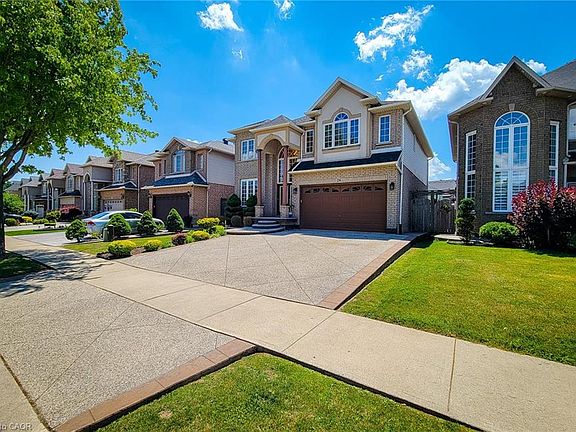 Offering this Custom built home, 2,712 sq feet by the original owner. 4 generous bedrooms, 3 1/2 baths all featuring granite counters, new toilets, soft close cabinets. Carpet free home with elegant oak hardwood throughout. Eat in kitchen with upgraded maple cabinets with glass doors and lighting plus centre island with breakfast bar. Formal dining room with decor columns and custom coffered cove with hand plastered ceiling. C/air, 21 potlights, fireplace with mantle in family room. Eye catching landscape design with perennial gardens, aggregate driveway and rear patio, fenced backyard. The basement has raised height ceiling (8'5") and fully insulated exterior walls. Bedroom level laundry. Roof replaced in 2021. Very clean and welcoming home.
