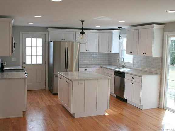Grand Colonial that has been meticulously redone in the highly desirable Great Neck area of Waterford. Close to beaches and center of Town. Large, level tree lined lot offers tons of privacy in a neighborhood setting. Slider from kitchen leads to large covered patio with fireplace for outdoor entertaining/living space. Generous room sizes throughout the home including brand new large Master Suite. New boiler, siding, windows, doors, hardwood flooring, kitchen, baths and much more! Owner/Agent