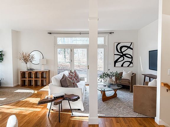 Nestled off Columbia Avenue this end-unit townhouse offers the perfect blend of charm, convenience, and modern comfort in a park-like setting. Step inside the entryway, where you'll find access to a spacious single-car garage and a separate storage and utility room. Upstairs, the main level features a bright, open-concept design, seamlessly combining the kitchen, dining, and living areas. Enjoy the warmth of a gas fireplace and step out onto your private, tree-shaded deck overlooking a serene wooded setting. The kitchen boasts a versatile island and a cozy breakfast nook. A convenient half bath with a laundry area completes the main floor. Upstairs, the primary suite offers a tranquil retreat with a charming window seat, a custom closet, and a private en-suite bathroom. Down the hall, you’ll find two additional bedrooms, a second full bathroom, and pull-down access to an attic for even more storage. Move-in ready with timeless charm in a highly desirable location!