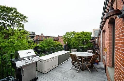 Fantastic natural light floods this turnkey 2 bed, 1 bath home as the picture window overlooks the treetops and fountain of picturesque Concord Square. This impeccable penthouse home boasts two good-sized bedrooms, great closet space, double vanity sinks and an expansive back deck with magnificent views, ideal for entertaining or prolonging the last of summer. Tasteful granite kitchen opens to generous living room and dining corner with built-in seating. Close to the shops, restaurants, MBTA, Copley Square, The Prudential Center and all the the vibrant South End has to offer. Hardwood floors throughout, central air, in unit washer/dryer and exposed brick complete this home. Pet Friendly and 100% owner-occupied association.