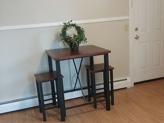First floor 3 bedroom apartment with a light and bright kitchen, beautiful bathroom, French doors in the livingroom to small porch, an site laundry, off street parking. available immediately, Very low heating cost!! Gas heat/ new furnace. Will consider only a small dogs- no large dogs please. 1600 security deposit and first month rent required. Rent is 895 month plus utitilites (garbage only included in rent)