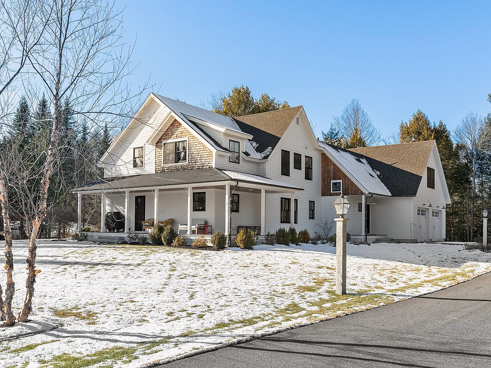 Modern Contemporary Farmhouse with 4 Bedrooms and 3.5 Bathrooms including an in-law suite situated on a 1.18-acre lot in the Mill Stream Association which offers conservation land and walking trails. The first floor of this sunlit home has an open concept design with large kitchen, dining and living room areas with built-ins and Australian cypress flooring with direct access to a beautiful bluestone patio and covered porch. The kitchen features stainless appliances including a Wolf range, tile backsplash and granite leathered countertops. The lower level offers a family room with high ceilings and an exercise room. Additional features include radiant floor heat in the primary bathroom, heated oversized 2-car garage, mudroom with built-ins, Geothermal heating for energy efficiency, central air conditioning, a whole-house automatic generator, irrigation system, copper gutters and more. The home is conveniently located to downtown Freeport, Wolfe's Neck State Park, marinas and restaurants.