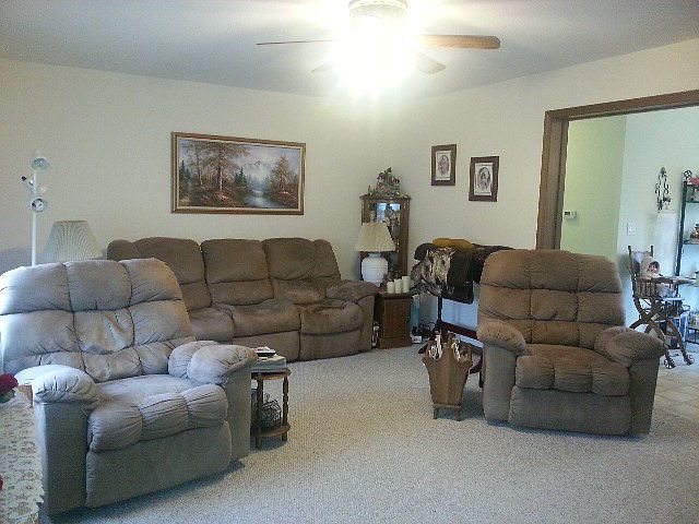 Ranch Style Living w/large open kitchen, first floor laundry is extra large, pole barn-concrete floor & electric, wooded acreage, fenced yard, poured foundation-full basement. Delco water. Covered front porch. Very clean property.