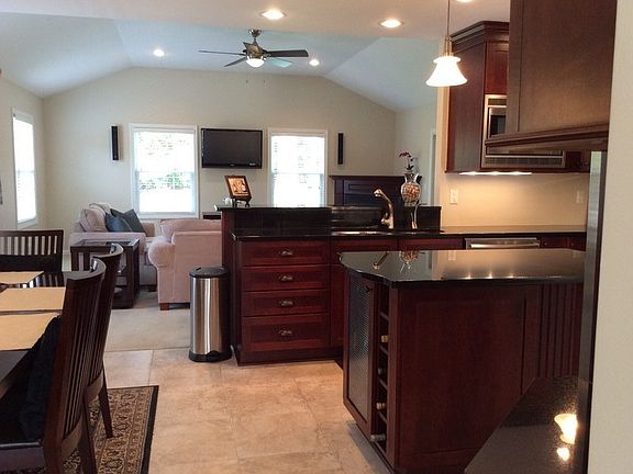 Completely Renovated. Immaculate, Move-in Condition.  Great neighborhood.  One block to Kindergarten through 8th grade school in very highly rated Cranford school district.  Walk to Train Station with service to New York City.  Quiet tree lined street with nearby walking/jogging paths, pond and playgrounds.   Open Floor Plan. Many Custom Features.  Custom kitchen has cherry wood cabinets.  High-end built in Stainless Steel Appliances include Bosch Refrigerator, Bosch Dishwasher and Bosch Microwave.  Bertazzoni 39 inch 5 burner range.  DuPont granite countertops with center island.  Spacious living room with original hardwood floors.   Large family room addition, with vaulted ceilings, gas fireplace and mounted flatscreen TV with surround sound system. Large Master Suite with huge walk-in closet, large bathroom with spa shower,  private water closet and walk-in linen closet.  2nd and 3rd bedrooms are large with original hardwood flooring under carpet.  2nd bathroom has handmade custom tile work, with spa jetted deep soaker tub. Spacious three season room.   Additional Bonus Room can be used as family room, office, or 4th bedroom.  Custom blinds throughout. House has plenty of storage with 2 full attics, basement and vinyl -sided storage shed.  Outside has private fenced in yard and beautiful stone wall with mature privacy trees.Gas Furnace (2 zone). 2 unit,2 zone Central Air Conditioning System. 200 Amp Electrical Service. 75 gallon ProMax High Recovery Water Heater. Attached Garage with Automatic Garage Door Opener. Double Driveway with Belgium Block boarder. Belgium Block Pathway to Back Yard. Lawn sprinklers front and rear.  Home is Not in a flood zone.