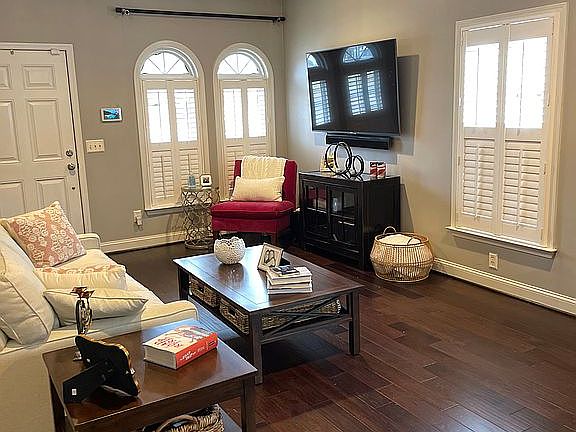 The dining room has tons of natural light offers easy access to the patio for drinks or to the deck for dinner. The kitchen has white cabinets, Bosch SS appliances, recessed lighting, granite and SS farmhouse sink. The garage door opens to the kitchen perfect to put shopping items on the counter. The 2nd bedroom tons of natural light offers walk in closet. The master bedroom suite offers tile shower, granite vanity and California Custom Closet. The home has been updated hvac, duct work, filter system, recessed lighting, ceiling fans, light fixtures, plantation shutters, Bosch SS appliances, tile back splash, farm house sink, tile flooring, hardwood flooring, Roof, brick side walk, patio, gutters, plumbing and more. The one car garage offers storage. The front yard is maintained by HOA. The location is closed to I-20, shopping, schools and so much more.